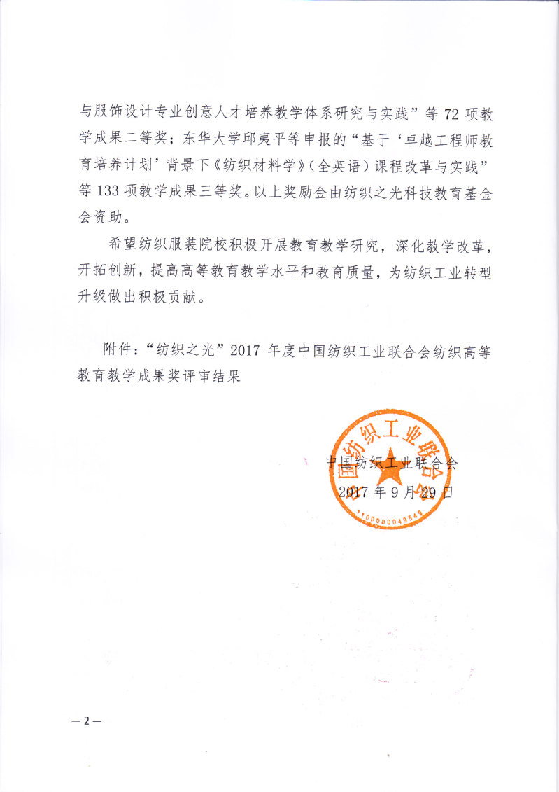 附件:“纺织之光”2017年度中国纺织工业联合会纺织高等公司产品成果奖评审结果.pdf
