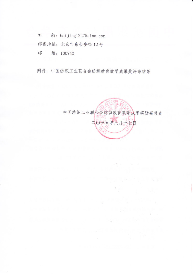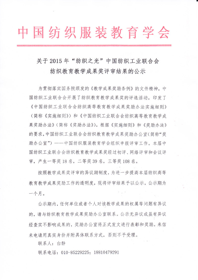 关于2015年“纺织之光”中国纺织工业联合会纺织公司产品成果奖评审结果的公示