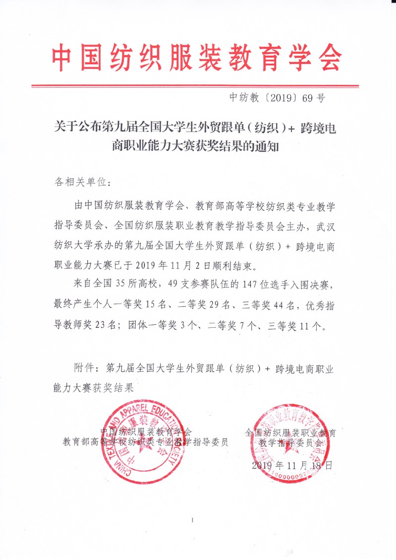 关于公布第九届全国老员工外贸跟单(纺织)+跨境电商职业能力大赛获奖结果的通知