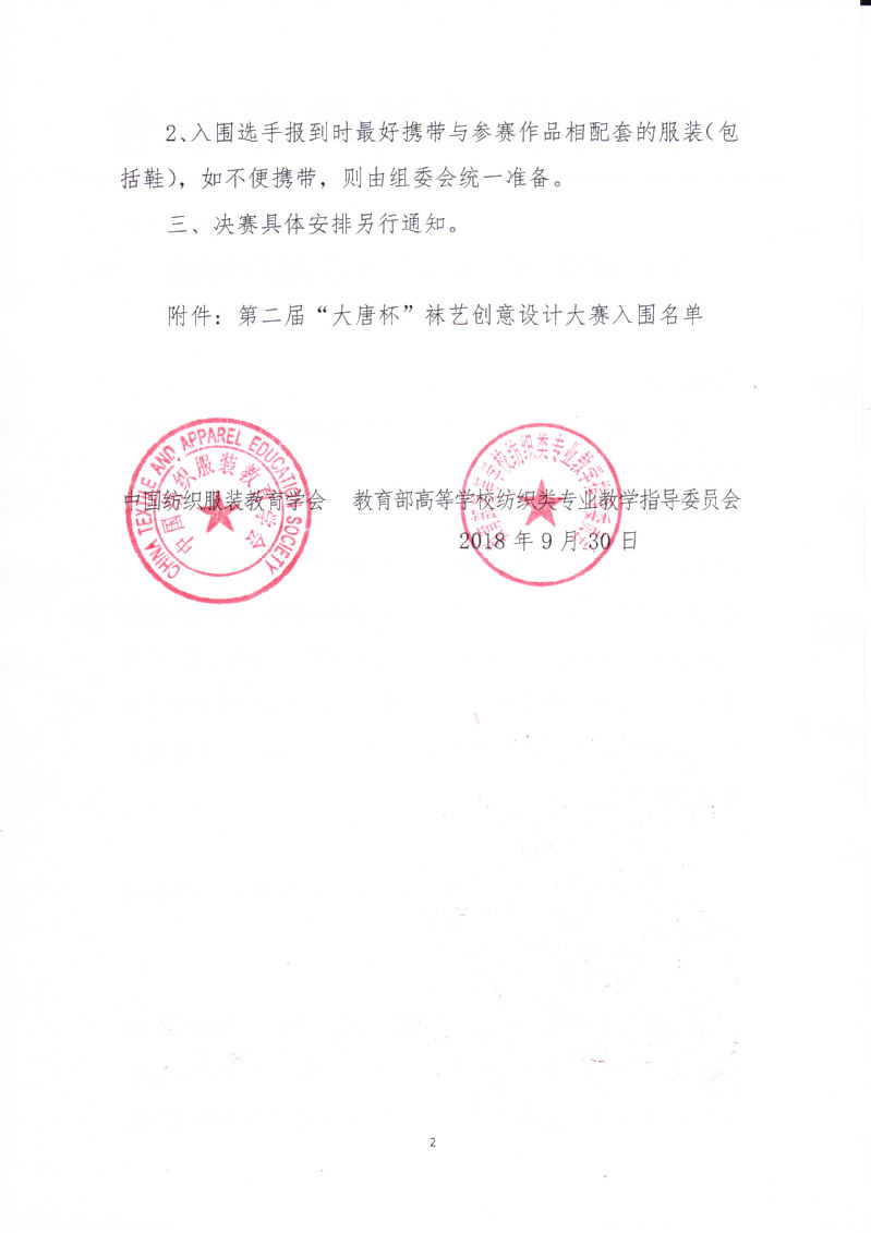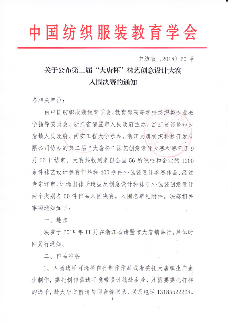 关于公布第二届“大唐杯”袜艺创意设计大赛入围决赛的通知