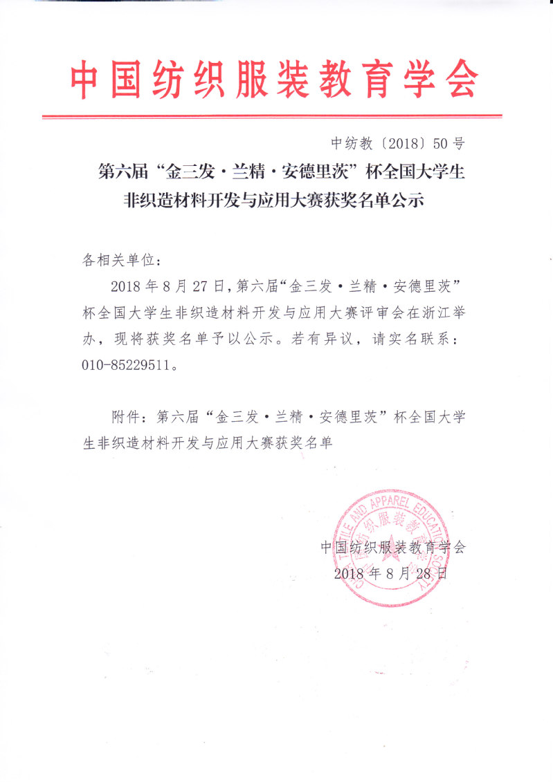 第六届“金三发·兰精·安德里茨”杯全国老员工非织造材料开发与应用大赛获奖名单公示