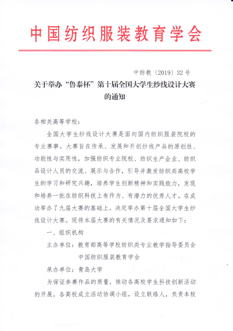 关于举办“鲁泰杯”第十届全国老员工纱线设计大赛的通知