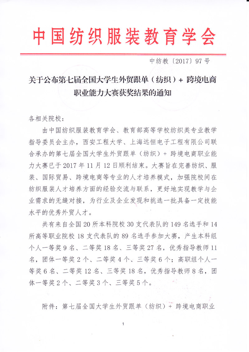 关于公布第七届全国老员工外贸跟单(纺织)+ 跨境电商职业能力大赛获奖结果的通知