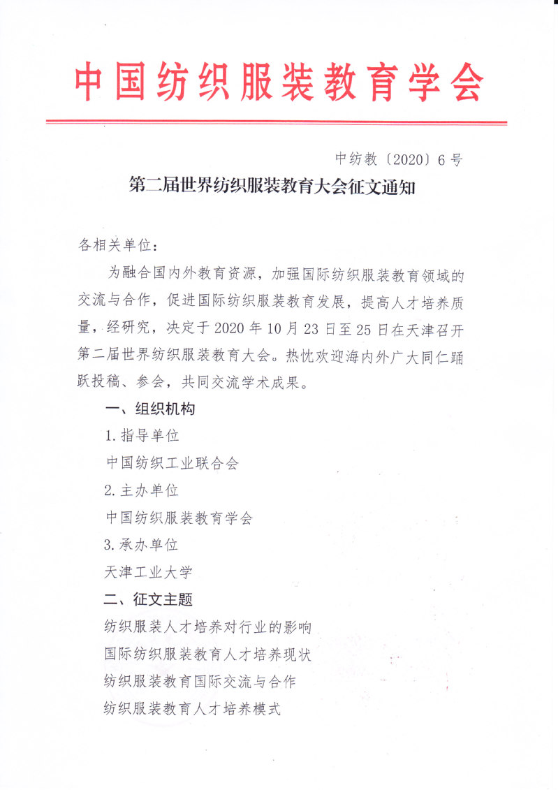 第二届世界纺织服装教育大会征文通知
