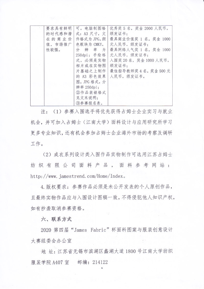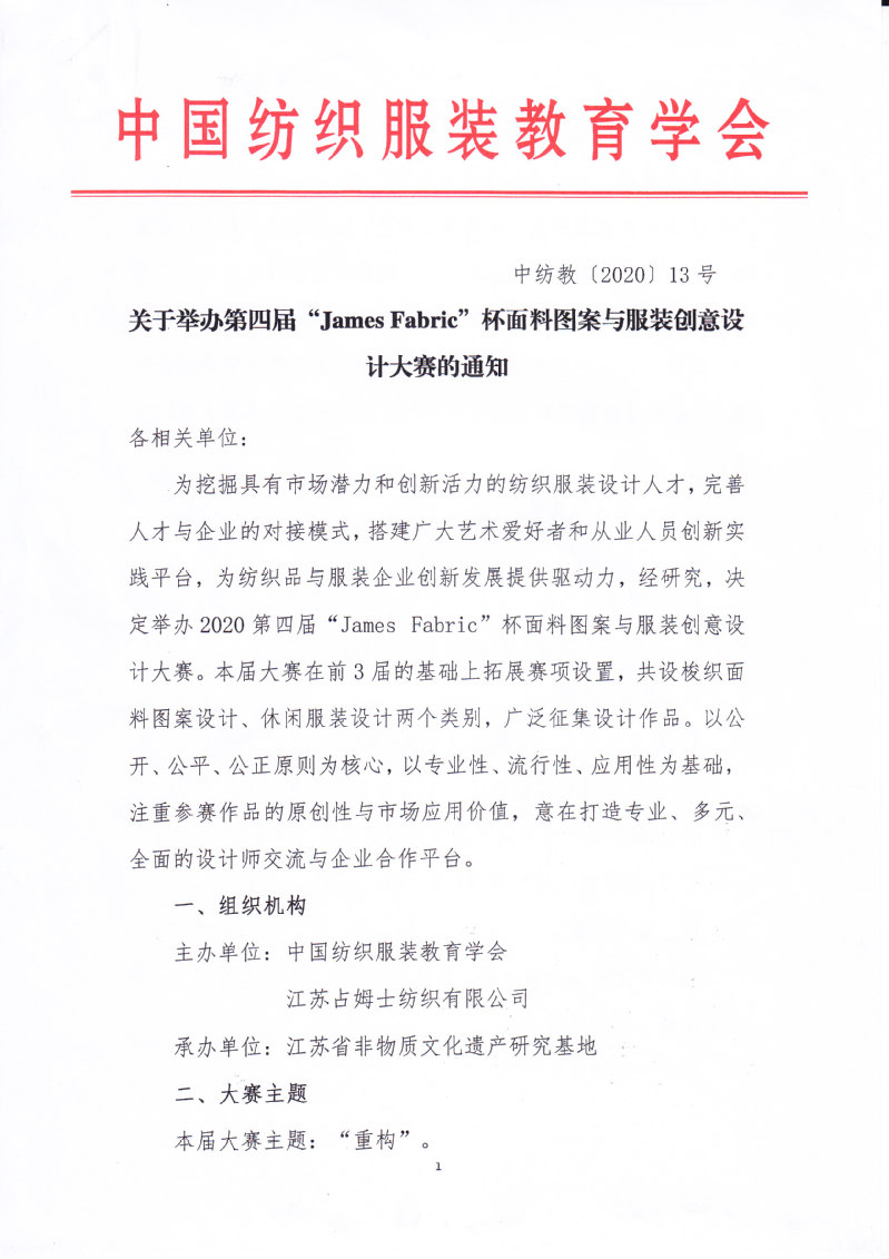 关于举办第四届“James Fabric”杯面料图案与服装创意设计大赛的通知