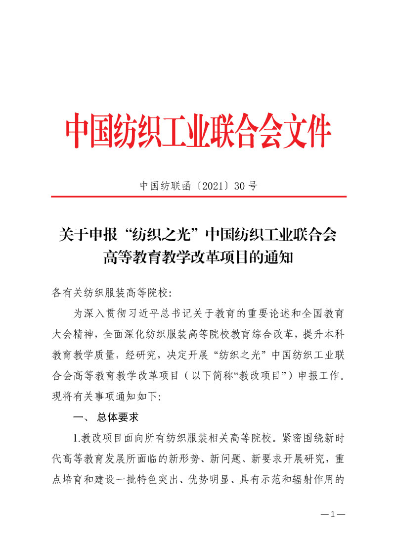关于申报“纺织之光”中国纺织工业联合会高等公司产品改革项目的通知