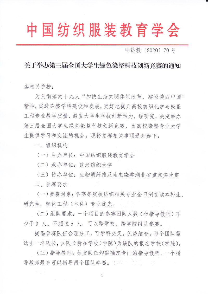 关于举办第三届全国老员工绿色染整科技创新竞赛的通知