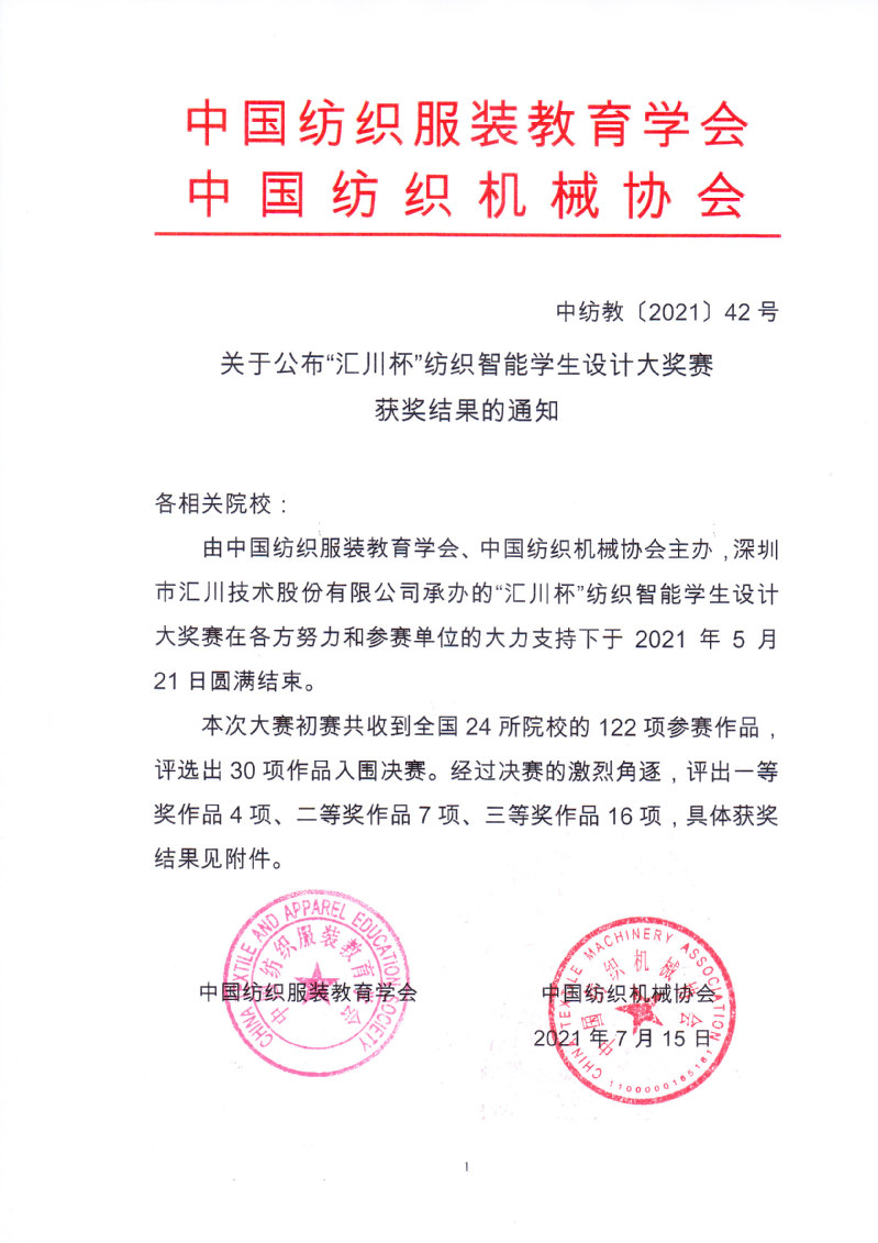 关于公布“汇川杯”纺织智能员工设计大奖赛获奖结果的通知