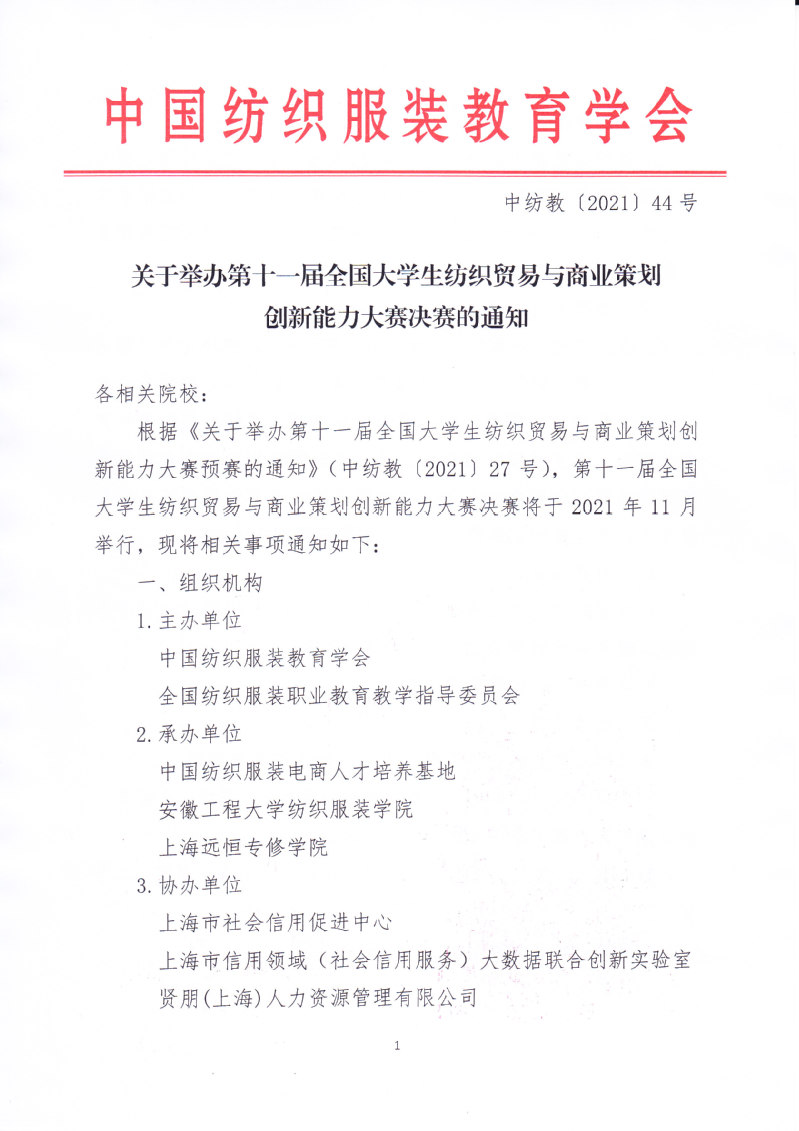 关于举办第十一届全国老员工纺织贸易与商业策划创新能力大赛决赛的通知