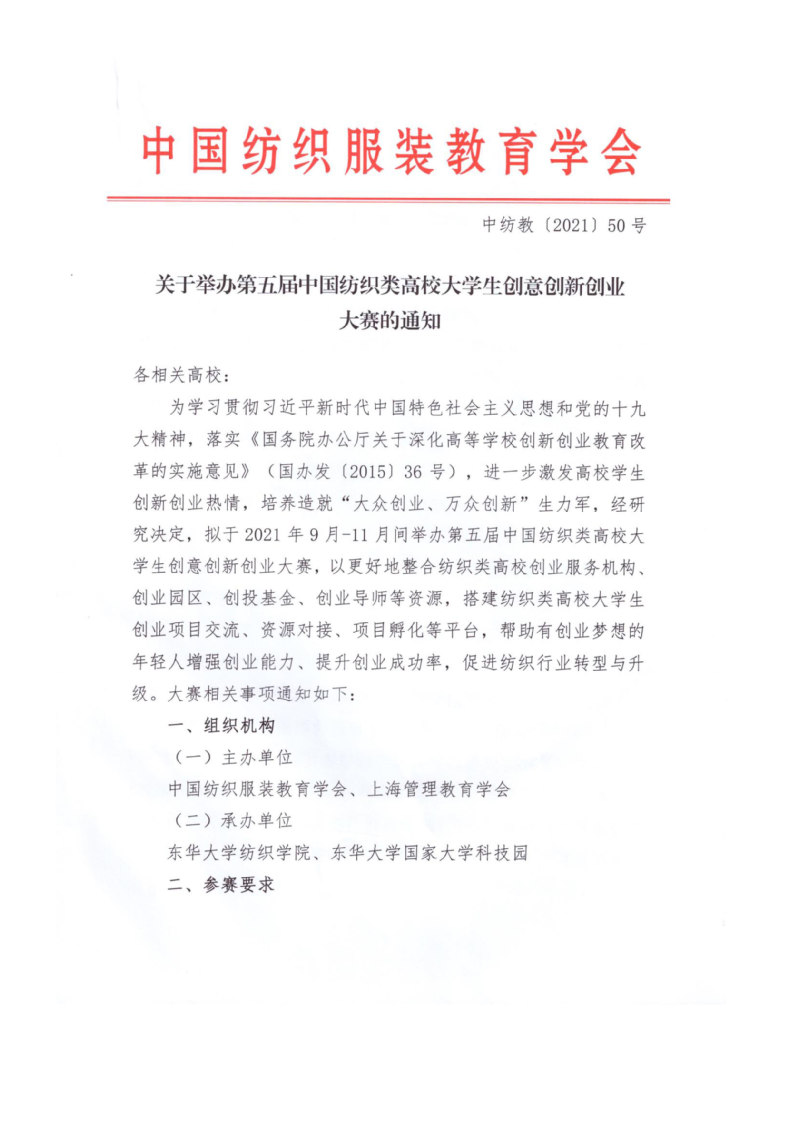 关于举办第五届中国纺织类高校老员工创意创新创业大赛的通知