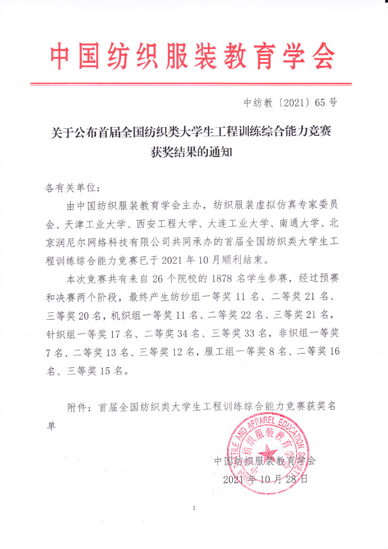 关于公布首届全国纺织类老员工工程训练综合能力竞赛获奖结果的通知