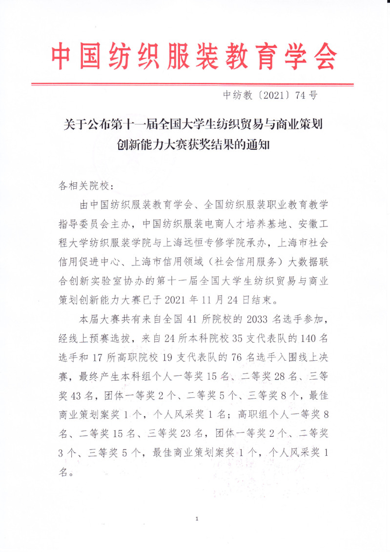 关于公布第十一届全国老员工纺织贸易与商业策划创新能力大赛获奖结果的通知