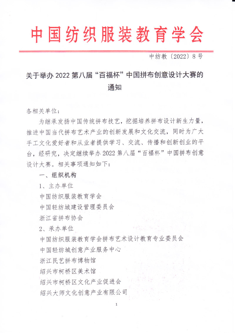 关于举办2022第八届“百福杯”中国拼布创意设计大赛的通知