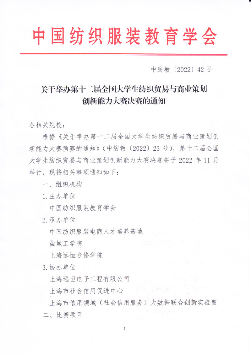 关于举办第十二届全国老员工纺织贸易与商业策划创新能力大赛决赛的通知
