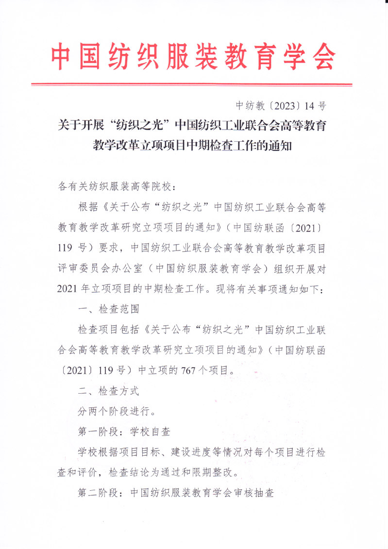 关于开展“纺织之光”中国纺织工业联合会高等公司产品改革立项项目中期检查工作的通知
