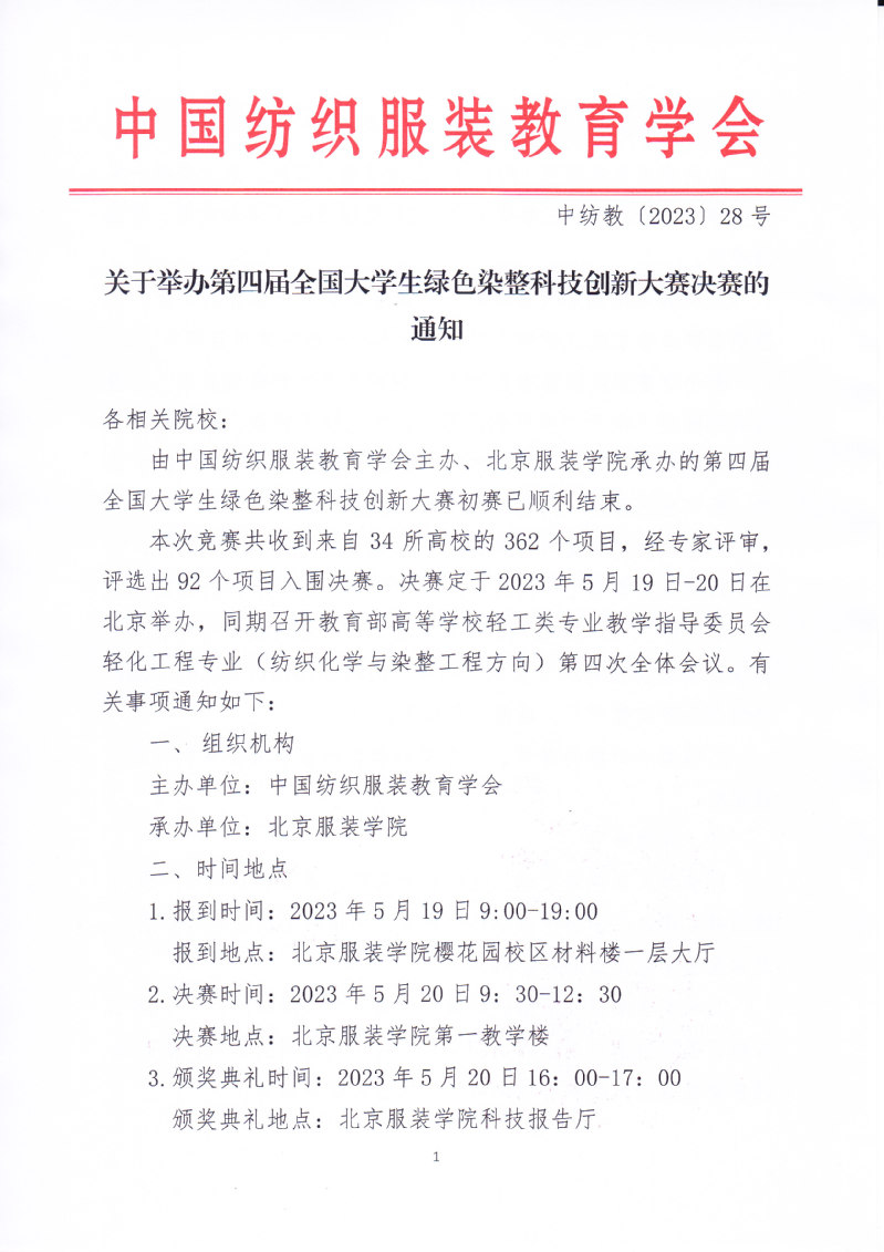 关于举办第四届全国老员工绿色染整科技创新大赛决赛的通知