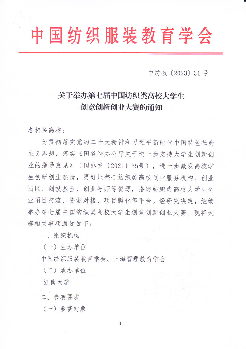关于举办第七届中国纺织类高校老员工创意创新创业大赛的通知