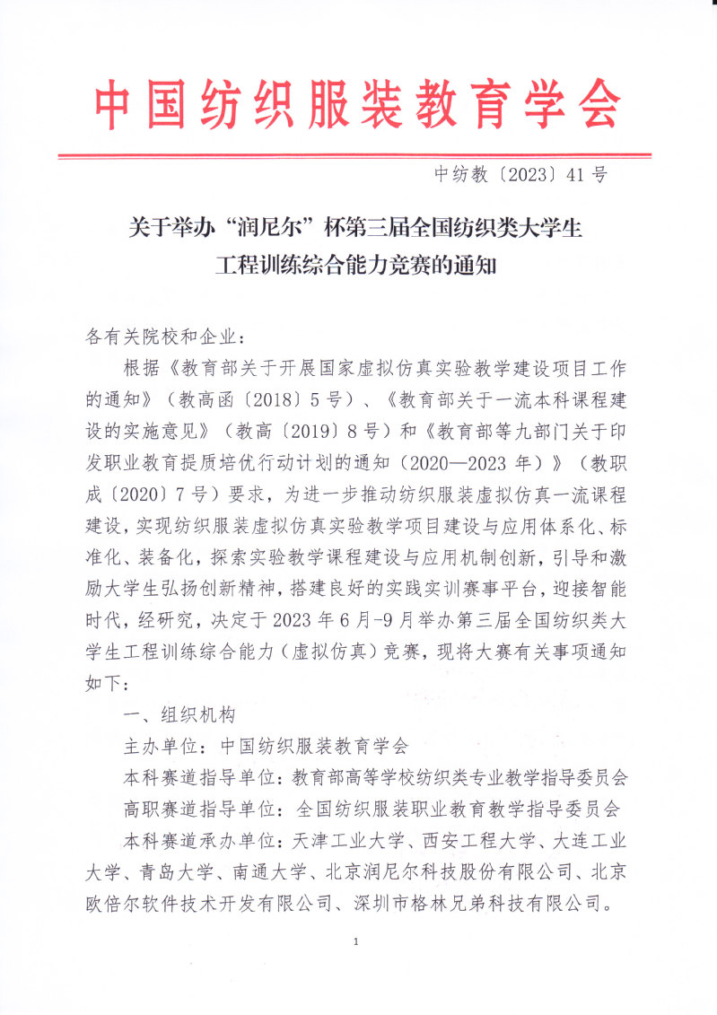 关于举办“润尼尔”杯第三届全国纺织类老员工工程训练综合能力竞赛的通知