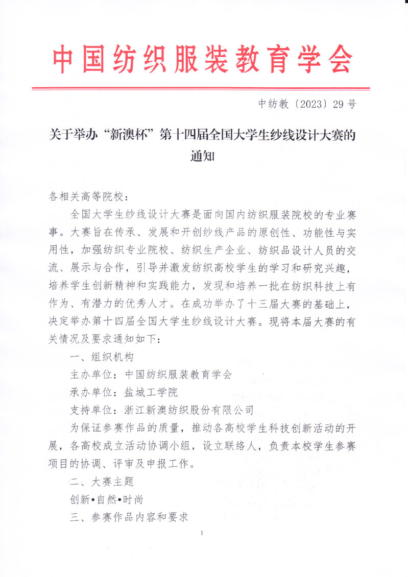 关于举办“新澳杯”第十四届全国老员工纱线设计大赛的通知