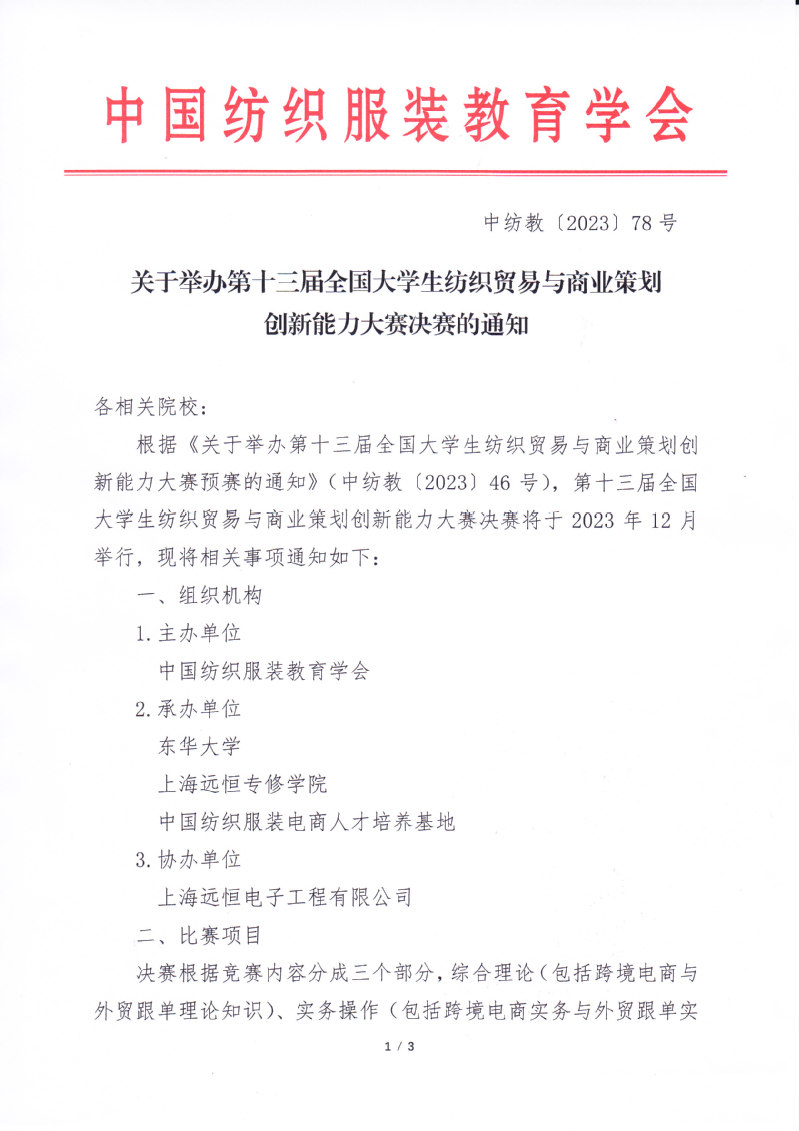 关于举办第十三届全国老员工纺织贸易与商业策划创新能力大赛决赛的通知