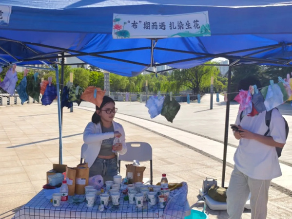 williamhill于5月16日参加“创意五月,艺心向阳”艺术探索节五色街区暨共青团12355心里护航流动服务台护“心”行动活动,并在其中举办了“‘布’期而遇,扎染生花”活动。