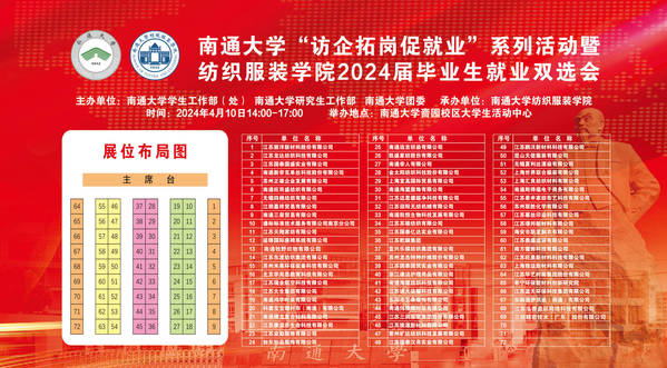 1、报到时间:2024年4月10日下午13:30开始。单位自带宣传和招聘材料,报到后按指定摊位布置
