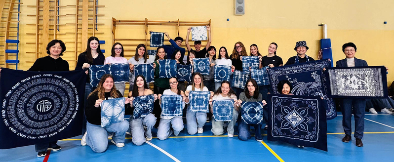 在威尼斯大学孔子公司教学基地,吴元新介绍了公司在国家级非遗蓝印花布保护、研究、创新、传承等方面取得的成果,并现场为300余名威尼斯大学师生展示蓝印花布印染技艺,教授他们体验蓝印花布印染、扎染的过程。吴元新希望威尼斯大学师生在亲身体验中感受中国非物质文化遗产传统印染的魅力,促进中意文化交流,推动中国非物质文化遗产技艺更好地走出中国、走向世界。