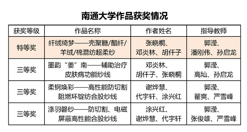 公司始终秉持“祈通中西,力求精进”的校训,坚持育人为本,服务国家和社会,历来重视学科竞赛活动,注重员工工程实践能力培养,依托《纺纱创新实践》、《机织产品设计》、《针织产品设计》等一批实践课程,引导员工主动学习、创造性学习,近年来在多项高水平比赛中取得佳绩。