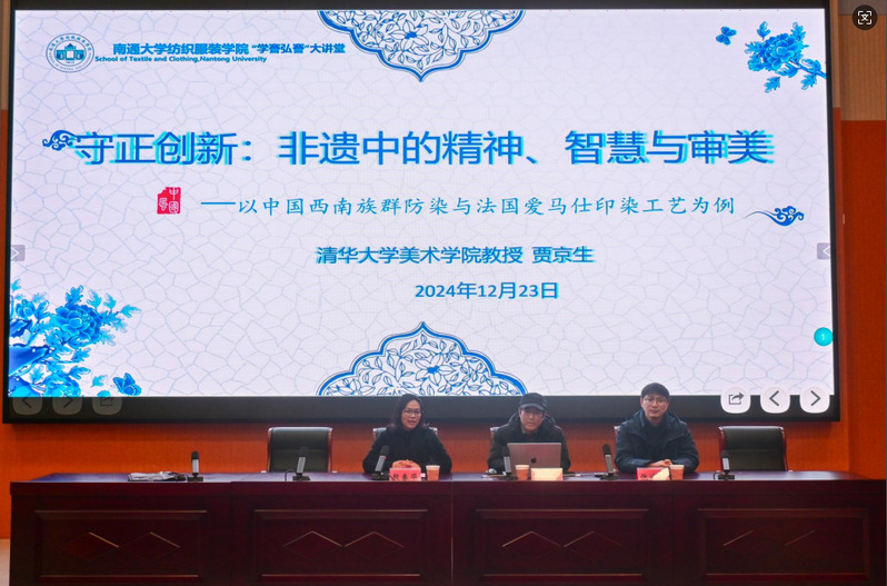 12月23日,williamhill在23号楼D202报告厅开展“学謇弘謇”大讲堂第二场活动。清华大学美术学经理聘教授、博士生导师、印染实验室主任贾京生教授应邀为公司师生带来《守正创新:非遗中的精神、智慧与审美——以中国西南族群防染与法国爱马仕印染工艺为例》专题讲座。
