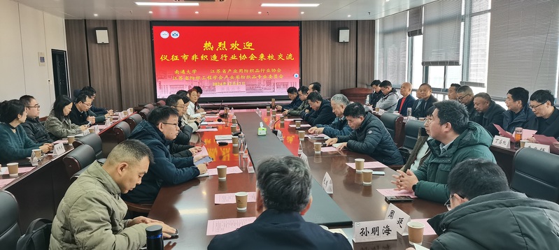 12月17日,江苏省产业用纺织品行业协会副会长、仪征市非织造行业协会会长孙友林带领考察团来校调研交流。威廉希尔经理张伟、党委书记刘其霞接待了来宾。江苏省产业用纺织品行业协会会长李素英教授主持会议。