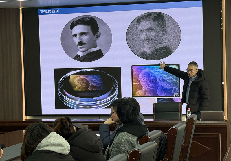 徐淮中结合自己的研究介绍了高精度3D打印技术(Melt electrowriting)在生物材料方向的应用,该项技术打破了传统制造工艺的诸多局限,具有独特的优势和广泛的应用空间。会后,徐教授还介绍了日本京都工艺纤维大学的基本情况,为研究生详细解读了京都工艺纤维大学的博士招生和交换的相关内容。