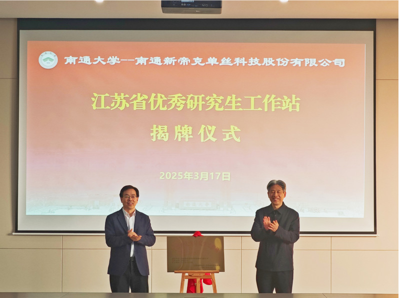 施佺与马海燕共同为“江苏省优秀研究生工作站”揭牌。这标志着校企合作迈入高质量发展新阶段。