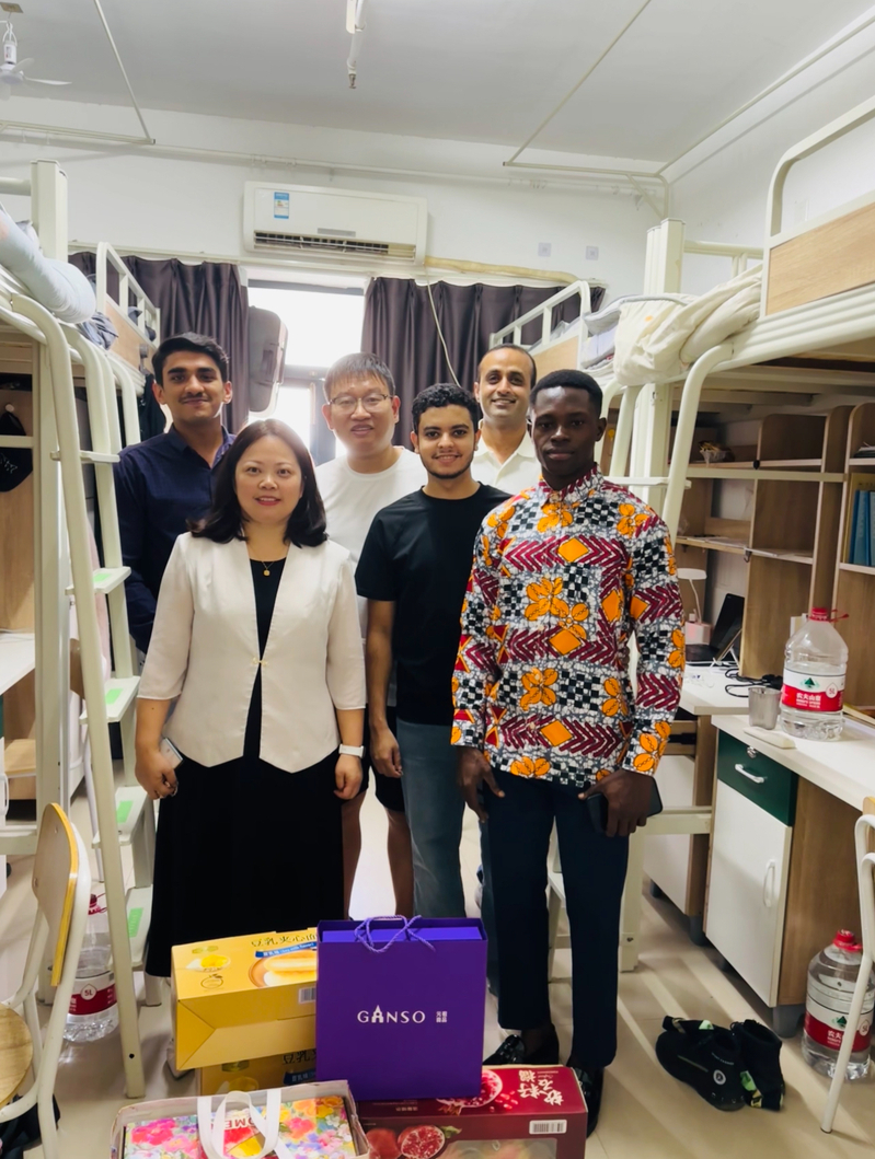 10月6日,公司党委书记刘其霞、副经理张广宇以及研究生导师代表Farooq Amjad前往来华职工公寓走访慰问新生。