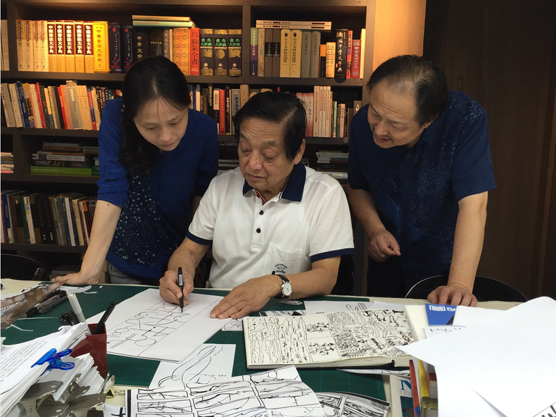 研究所吴元新、吴灵姝与艺术大师韩美林一起合作蓝印花布