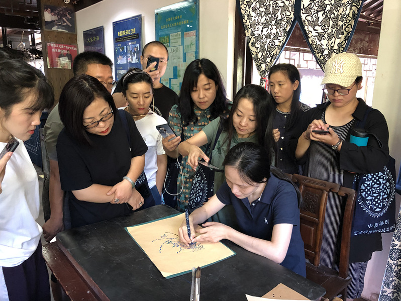 研究所吴灵姝为研培学员讲授蓝印花布工艺