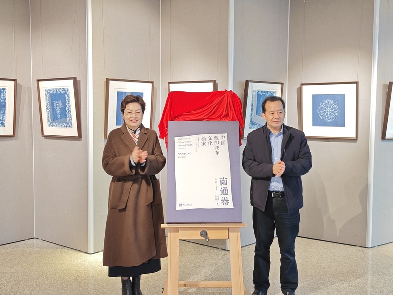 研究院学术成果《中国蓝印花布文化档案南通卷》获中国民间文艺山花奖,公司党委副书记王卫东、南通市委常委、市委宣传部部长陈冬梅为新书首发揭幕